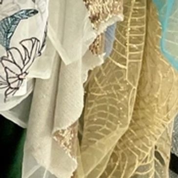 Fine Fabrics including, sequins, embroidery lace, beaded lace, bridal lace, bridal tulle, stretch taffeta, and more.